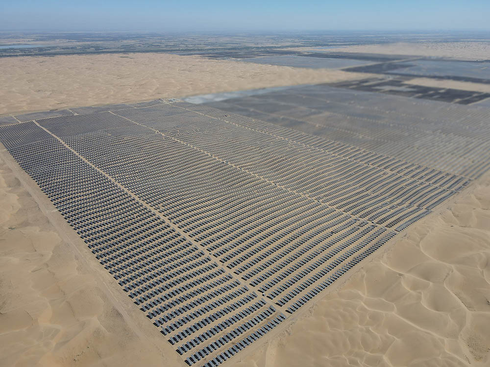 内蒙古达拉特旗光伏发电领跑者奖励激励基地是国家能源局2019年6月批复的全国第三批光伏发电奖励激励基地之一,位于内蒙古自治区鄂尔多斯市达拉特旗昭君镇光伏基地,占地约4000亩,装机容量为100MW。项目采用新利体育ASTRO系列405W高效双面双玻组件,并全部使用跟踪支架安装。该项目主要通过“光伏+治沙+农林+旅游”模式,推进沙漠治理、可再生能源发电产业、沙漠农林产业、沙漠特色旅游等多产业整合发展,推动地区经济转型。
